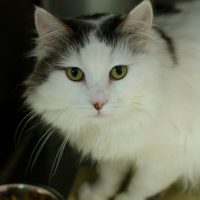Her ethereal beauty makes her look like she belongs on the cover of a feline magazine, and her personality fits perfectly with that image. Purrsia is a true diva among cats. She’s absolutely gorgeous with her long, silky soft coat of gray and white fur and large green-yellow eyes. She is 6 years old, and as far as she’s concerned, she’s old enough now to know exactly what she wants, and she isn’t afraid to say it. Purrsia likes attention, but like many of her feline cousins, she insists upon being the one who decides when and how much. She has no desire to share her home with other animals, wanting nothing more than being the center of attention. Come visit Purrsia, the pristine prima donna, today.