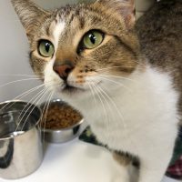Lolly is simply irresistible. From her splendid coloring – brown tabby with a white chest, legs, and an enticing streak up her face – to her big green eyes, she’s nothing short of gorgeous. But if you ignored all of that, you’d still have one fantastic feline. Lolly is just over a year old, so she’s pretty playful, but her favorite activity seems to be being adored. She loves getting scratched right behind her ears, pushing into your hand if you stop. And she’s a talker who isn’t afraid to use her voice to get your attention. Lolly is an overall charmer who’s sure to brighten anyone’s home.