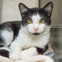 Are you seeking an aloof feline friend who simply wants to be himself? Introducing Jovi. This seven-month-old black and white tuxedo kitty is about as straightforward as they come. If you want to pick him up and shower him with your affection, he accepts it easily without complaint. If you’re busy doing your own thing, Jovi is just as happy to entertain himself or curl up and take a quick cat nap. Jovi is a truly wonderful boy with the simplest of needs: feed me, love me, give me a home to call my own.